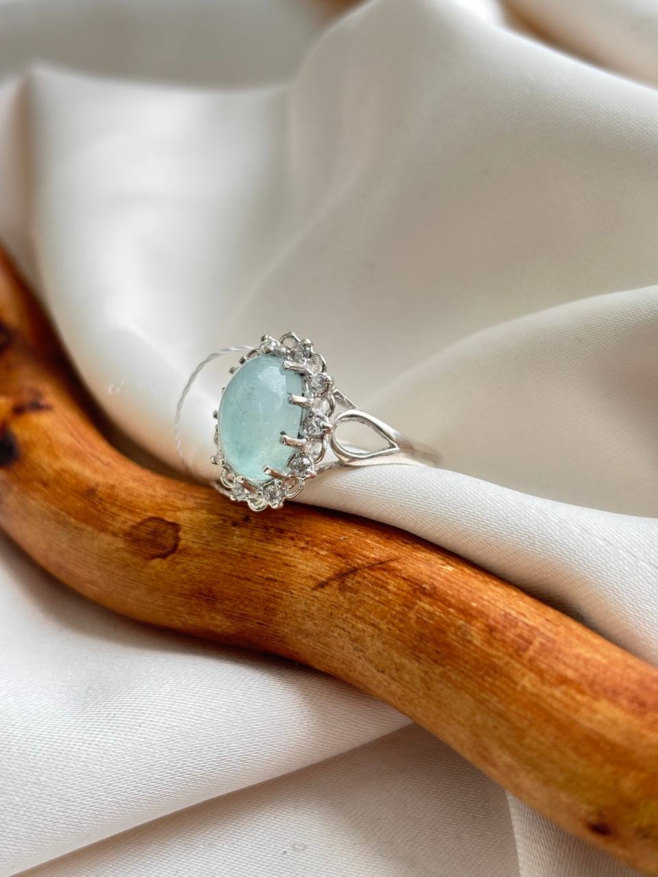 Капля утреннего моря: кольцо с голубым аквамарином. Это украшение — воплощение чистоты, свежести и безмятежной гармонии, которое словно вобрало в себя прозрачность океанских волн и ясность неба. Овальный кабошон аквамарина нежного голубого оттенка заключён в лаконичную оправу из серебра 925 пробы, которая подчёркивает его природную красоту, не отвлекая внимания. Это элегантное классическое кольцо с аквамарином станет универсальным спутником для романтичных и мечтательных натур, даря ощущение лёгкости, внутреннего покоя и связи с морской стихией.