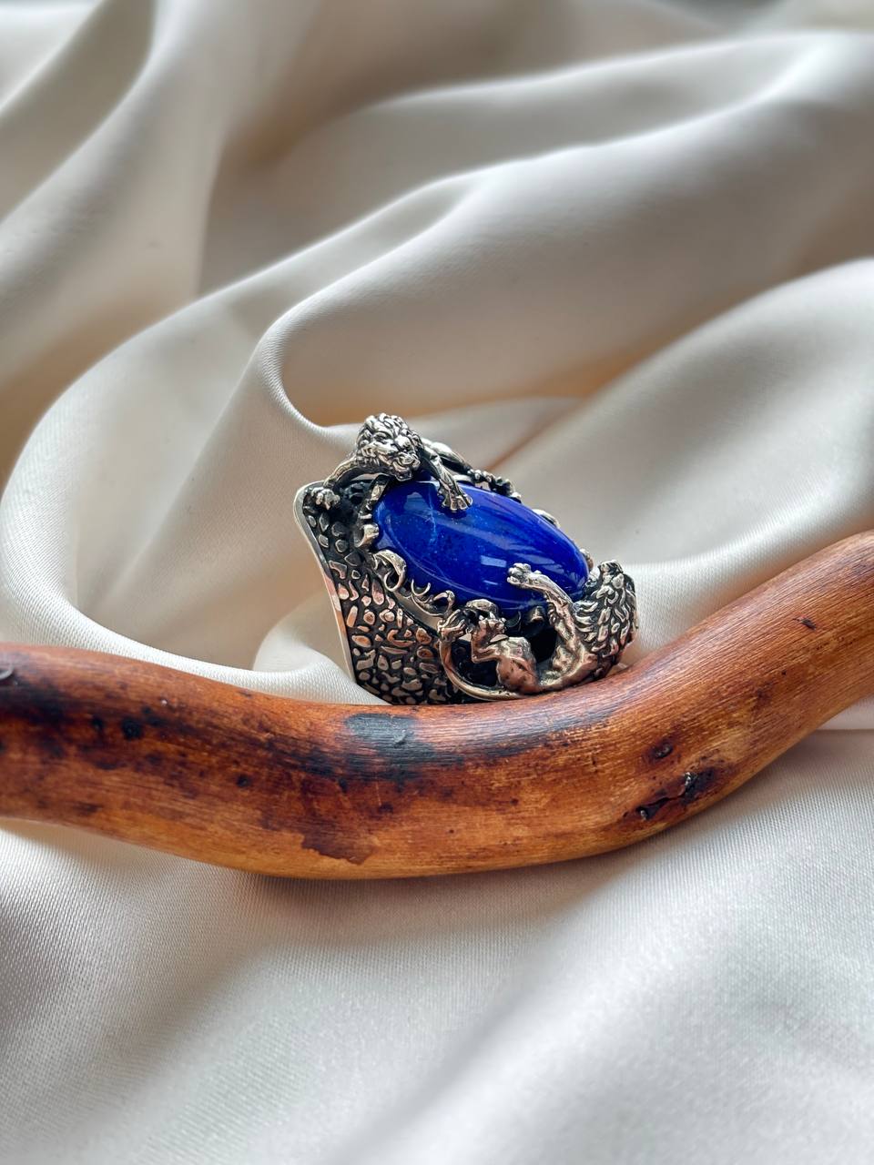 Храните кольцо отдельно от других украшений в мягком мешочке или шкатулке, чтобы фигурки львов и камень не деформировались и не поцарапались. Лазурит хрупок (5,5 по шкале Мооса) и требует бережного отношения.