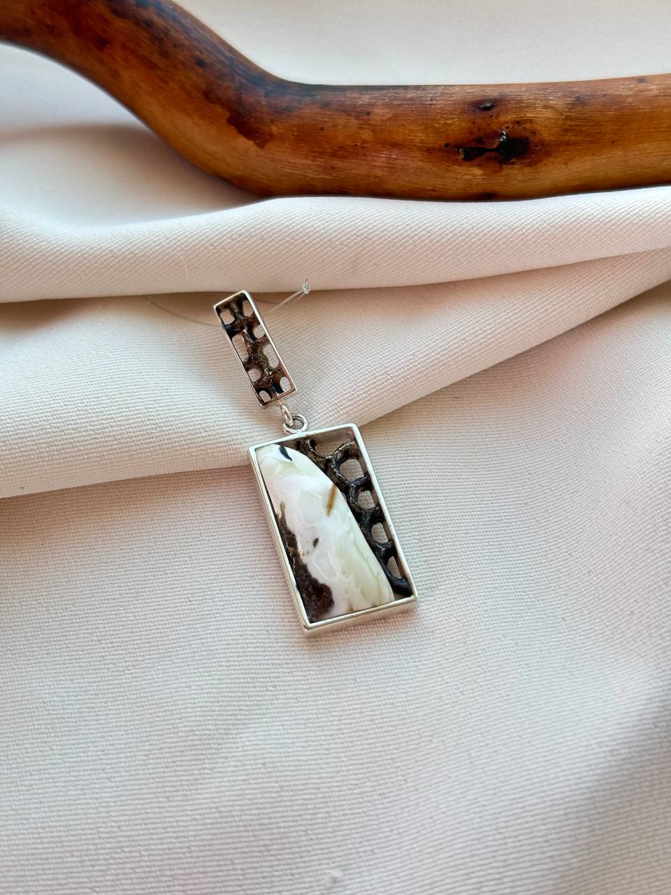 Храните кулон отдельно от других украшений в мягком мешочке или шкатулке с бархатной подкладкой, чтобы защитить серебро и нежную матовую поверхность камня от царапин.