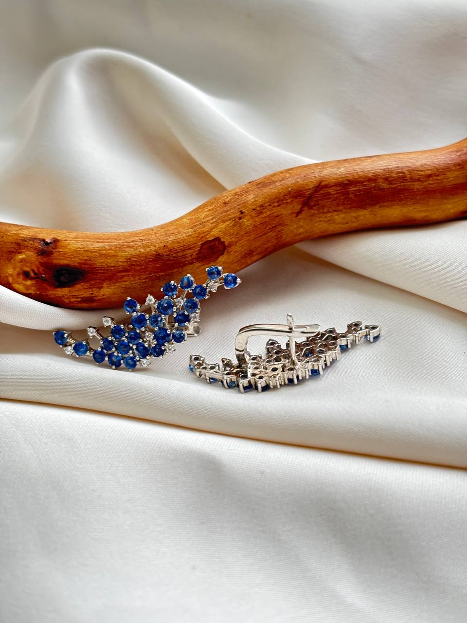 Храните серьги отдельно в мягком мешочке или шкатулке, чтобы ажурные крылья и камни не деформировались и не поцарапались.
