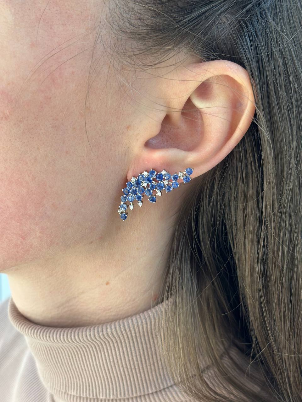 Сапфир — один из самых благородных и почитаемых драгоценных камней, королевский минерал, известный человечеству тысячелетиями. Его название происходит от греческого sappheiros — «синий камень». Глубокий, насыщенный синий цвет этого экземпляра, подобный цвету ночного неба или тёмной морской волне, создаётся примесями титана и железа в кристаллической решётке корунда. В древности считали, что мир покоится на огромном сапфире, а камень отражает небесную лазурь. Огранка каждого камня выполнена с ювелирной точностью, чтобы максимально раскрыть его природную глубину, блеск и чистоту цвета, делая его центром притяжения всей композиции.