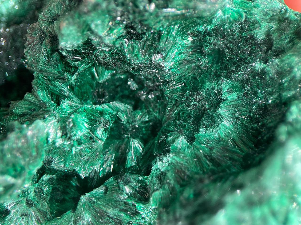 • Более совершенным способом подделки является малахитовая крошка, которую прессуют и склеивают в цельный кусок. Стоит заметить что это обман лишь на половину так как используется крошка натурального малахита. Распознать такую фальшивку можно с помощью лупы, разглядев детально все трещины и изъяны.