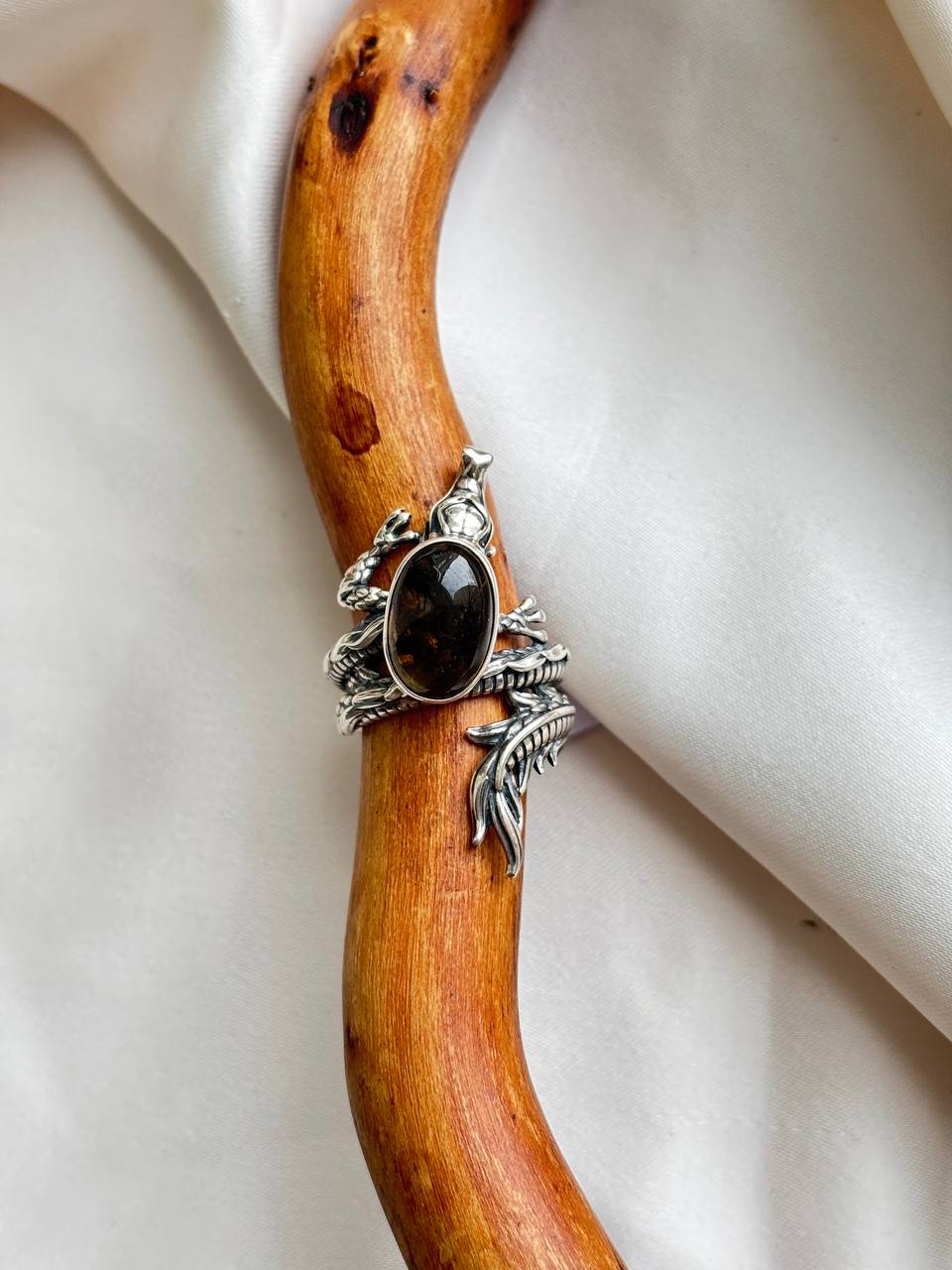 Этот самоцвет также связывают с исцелением, защитой и развитием интуиции. Считается, что он укрепляет иммунитет, благотворно влияет на нервную систему и помогает своему владельцу чувствовать тонкие энергии, предвидеть опасности и избегать их. Змея как древний страж многократно усиливает защитные свойства камня, оберегая от недобрых намерений и негативной энергии.